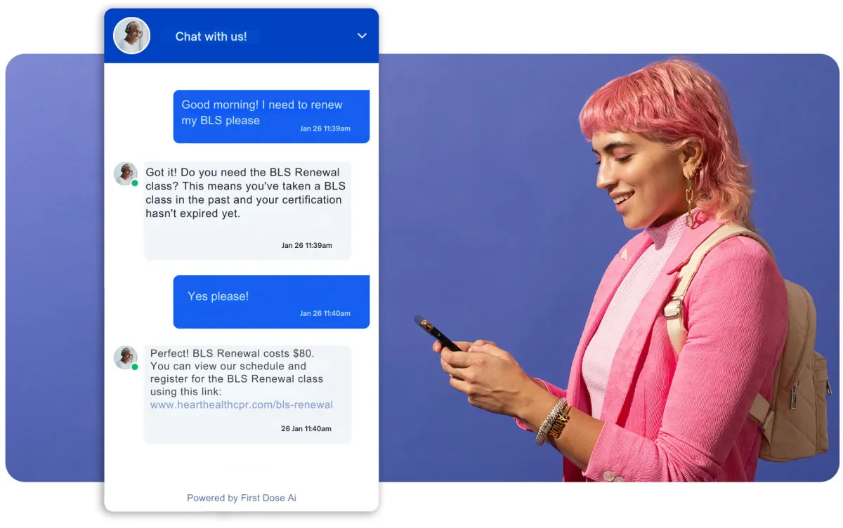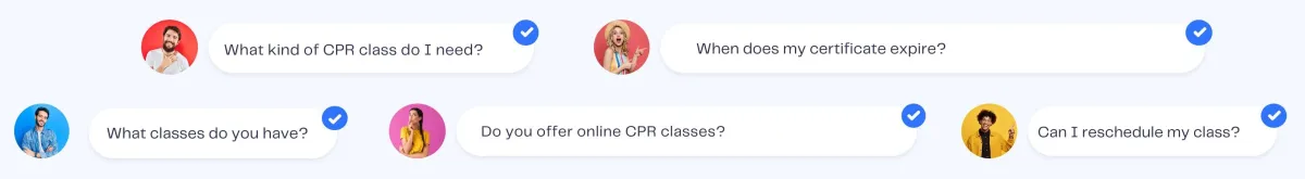 To build your Ai assistant, we will ask for information about your training organization such as: Your address, class offerings, prices, schedule, booking links, FAQs etc. We will also inquire how you would like the conversation to flow when a customer is interacting with the assistant. We already know the questions CPR trainers ask customers in order to determine which course is right for them (such as BLS vs CPR/AED/First Aid). In addition, we want to capture the voice of your organization and gather the information that is important to you.
